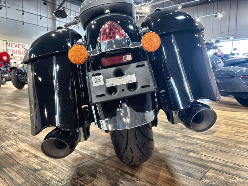 Style meets comfort. A nod to the classic Indian Motorcycle style with modern amenities for long-haul comfort.